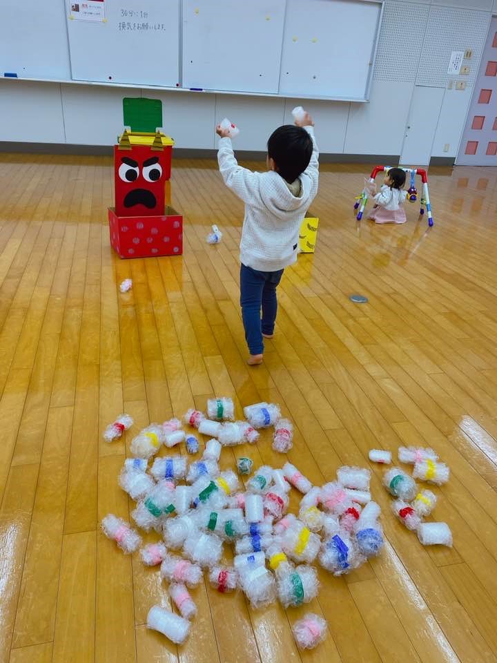 平井さんは豆を用意する代わりに、星型の紙でできたものや、緩衝材で作られた投げるものを用意していました。これなら子どもたちも安心して遊べますね。