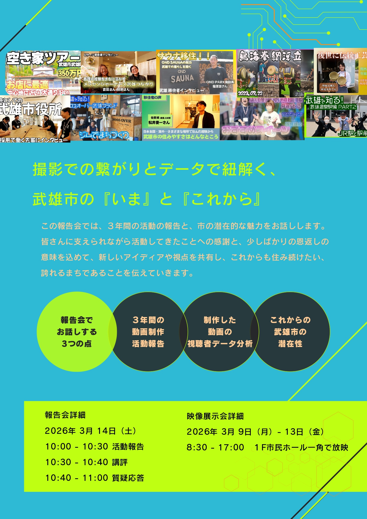 さらに、3月9日(月)~13日(金)は武雄市役所1階市民ホールにて動画を展示・放映🎦