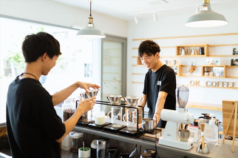 「生まれ育ったまちへの恩返しをしたい」という想いでイベントを企画・運営した父の背中を見て、福山さんも別の角度からまちへ恩返しできないかと考えます。そして生まれた『OK COFFEE』は駅前商店街のシャッターを開け、現在人気店となっています。