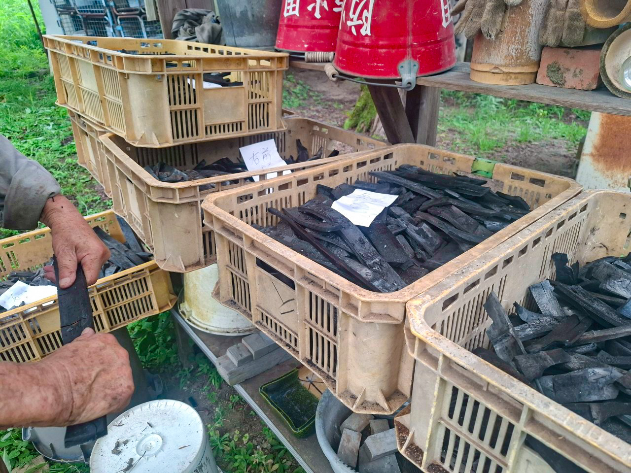 出来上がりの炭も各種商品に求められる品質に合わせて仕分けます。家庭でよりおいしくご飯を炊くための炭のほか、農業資材の土壌改良材、建築資材の湿度管理材など、多彩な用途で販売されています。