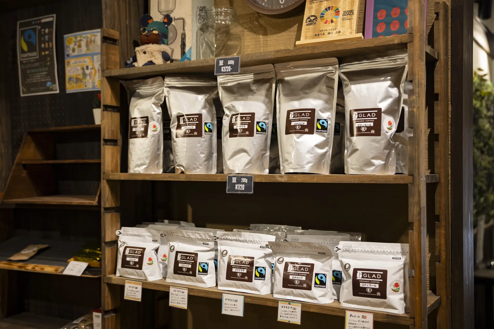 産地ごとの個性や香りの違いを楽しみながら、生産者の暮らしを支える一杯を選べるスペース。旅するように豆を選ぶ時間も、このお店ならではの楽しみです。