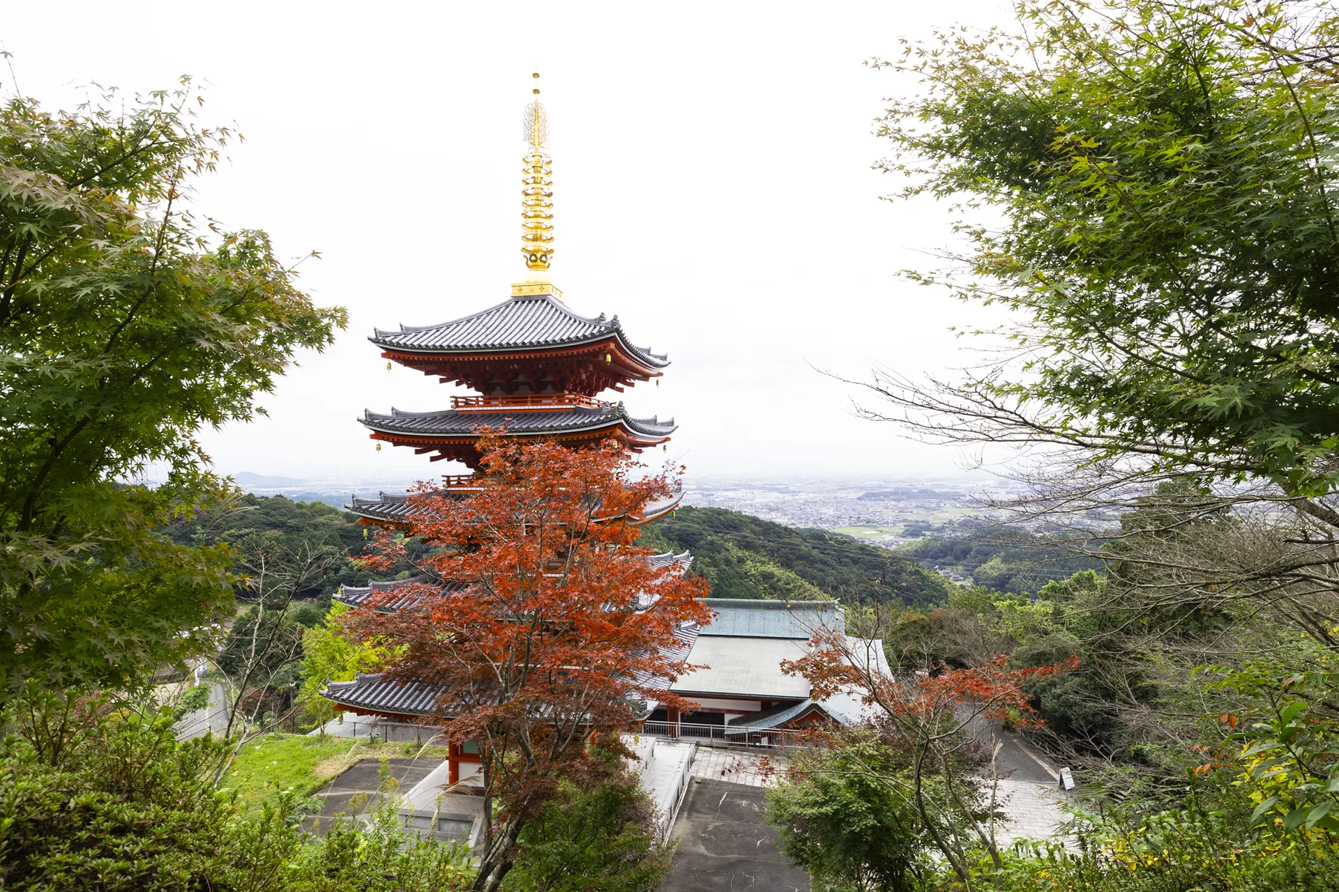 豊かな自然に抱かれた「総本山本福寺(ほんぷくじ)」朱色にそびえる西日本最大級の五重塔や壮麗な本堂は、地域のランドマークとして町内外から多くの参拝者を迎えています。四季折々の風景とともに、境内からは筑後平野の絶景を一望でき、散策するだけでも心が穏やかになるスポットです。