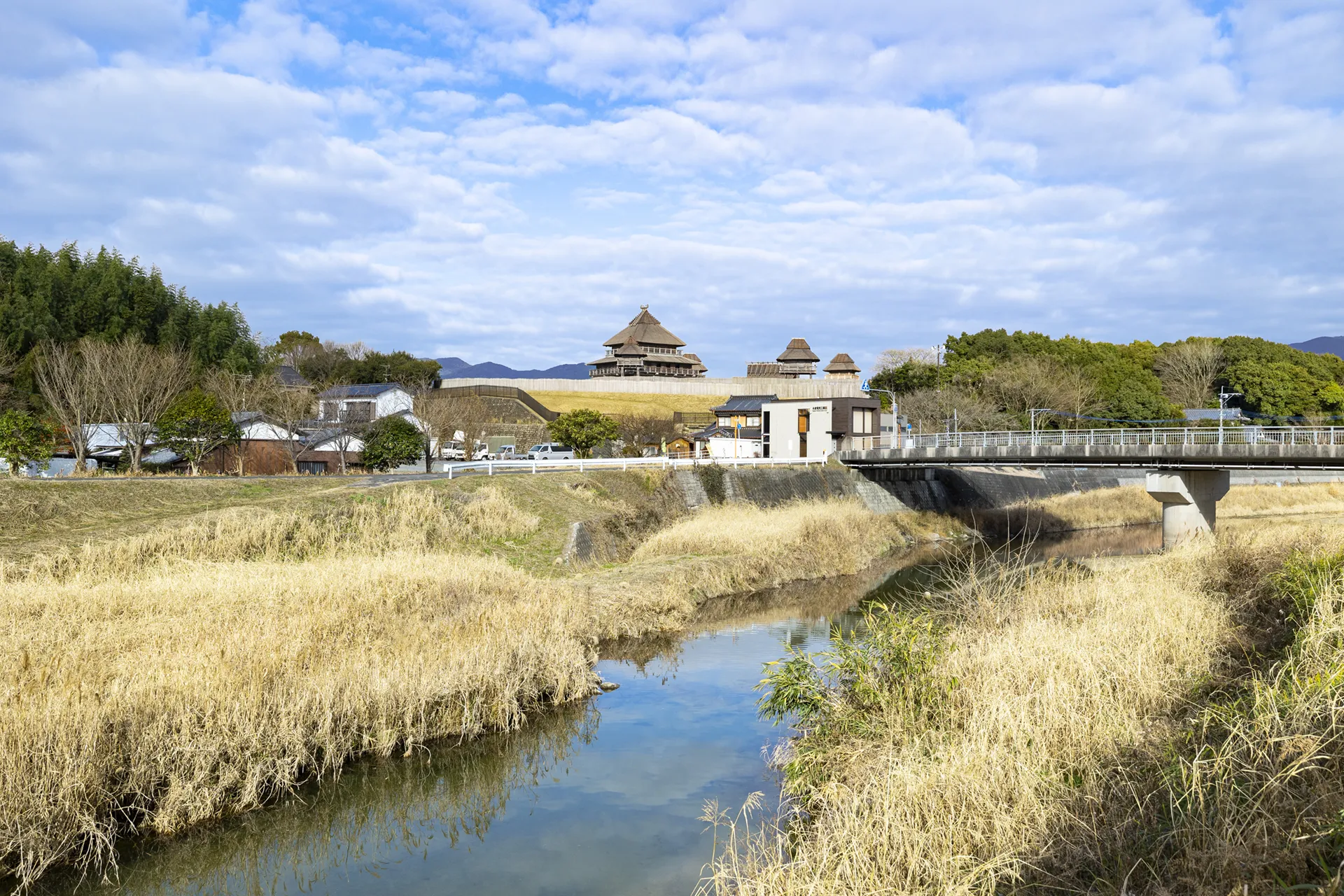 吉野ヶ里遺跡を望む田手川沿いの河川敷 〜遺跡と川を流れる風に包まれる原風景〜